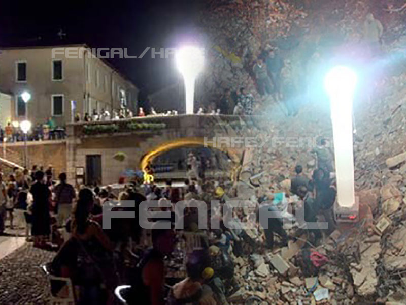 Sistem, 1.2KVA'lık dahili genet, iki üfleyici, 400W metal halide lambadan oluşmaktadır.Kullanıcının önce jeneratörü çalıştırması ve ardından kumaşı zeminden 4,5 metre yükseklikte şişirmek için üfleyicileri çalıştırması gerekir.Ayrıca 10.000 metrekareye kadar bir alanı aydınlatan lambayı yakıyoruz.