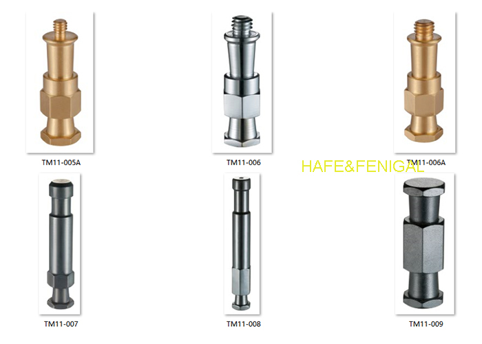 Malzeme Çeşitliliği: Seri, belirli işlevsel ihtiyaçlara göre uyarlanmış yüksek kaliteli malzemeleri entegre eder. Pirinç saplamalar (örneğin, TM11-002B, TM11-002C, TM11-006, TM11-006A), olağanüstü korozyon direnci, mükemmel elektriksel iletkenlik ve sağlam dayanıklılık sunarak, çeşitli ortamlarda uzun süreli kullanım için idealdir. Alüminyum saplamalar (örneğin, TM11-007, TM11-008, TM11-009, TM11-010), yük taşıma kapasitesinden ödün vermeden genel ekipman ağırlığını azaltan hafif ancak sağlam bir yapıya sahiptir—taşınabilir ve yerinde çekimler için mükemmeldir. Standart üst saplamalar (örneğin, TM11-001, TM11-001A, TM11-001B), genel amaçlı uygulamalar için güç ve maliyet etkinliğini dengeleyen dayanıklı alaşım malzemelerden üretilmiştir.